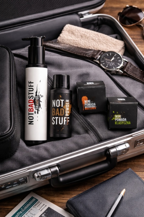 Wybierz męski zestaw podróżny Not Bad Stuff i miej wszystko, czego potrzebujesz do pielęgnacji i stylizacji włosów – zawsze pod ręką.